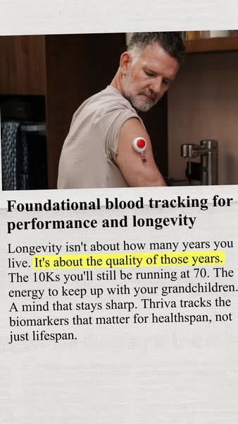Thriva: blood-tracking subscription using an editorial article cutout styled to look like a broadsheet. The format choice here is the targeting. Thrivaâs customer is likely to be a 45â60 year old professional who reads the FT, gets a health MOT once a year, and trusts institutions over influencers. By borrowing the visual language of a newspaper feature â serif type, highlighted pull quote, the clinical-but-warm photography â Thriva is signalling âthis is for serious peopleâ before the copy even lands. For this audience, a UGC talking head might feel too ânativeâ and a polished brand film could feel like pharma advertising. The broadsheet format sits in the exact gap between those two: credible, grown-up, and editorially neutral. The highlighted line (âItâs about the quality of those yearsâ) mimics the way youâd mark up a real article that struck a chord. It makes the viewer feel like theyâre discovering a recommendation, not being sold to. The format matches the buyer, not the product category.