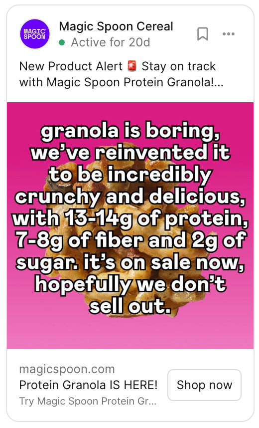 This ad for Magic Spoon cereal does just that.